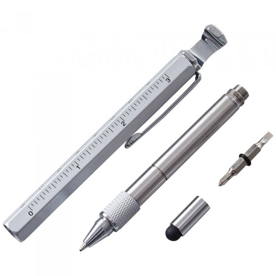 - Kugelschreiber, Schraubendreher, Flaschenöffner und vieles mehr, integriert in einem eleganten Stift!