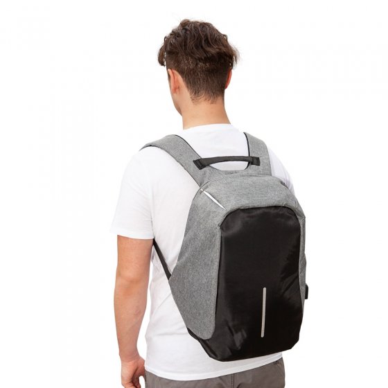 Rucksäcke ziehen Taschendiebe magisch an, denn hinten hat man keine Augen. Dass ein Rucksack trotzdem nicht unbedingt ein Risiko sein muss – und auch nicht unbedingt schwarz sein muss –, beweist der lichtgraue ANTI-DIEBSTAHL-RUCKSACK: Er ist modisch und bequem – und er lässt sich garantiert nicht unbemerkt öffnen! Der umlaufende verdeckte Reißverschluss ist von hinten nicht zugänglich, und das schneideresistente Material lässt keine Auftrennversuche zu. Maße (B x H x T): ca. 41 x 10 x 24 cm. Mit insgesamt 6 Fächern. Ob im Public-Viewing-Gedränge, in der Stadion-Warteschlange oder in der S-Bahn: Mit diesem Rucksack zeigen Sie Dieben überall die kalte Schulter!
