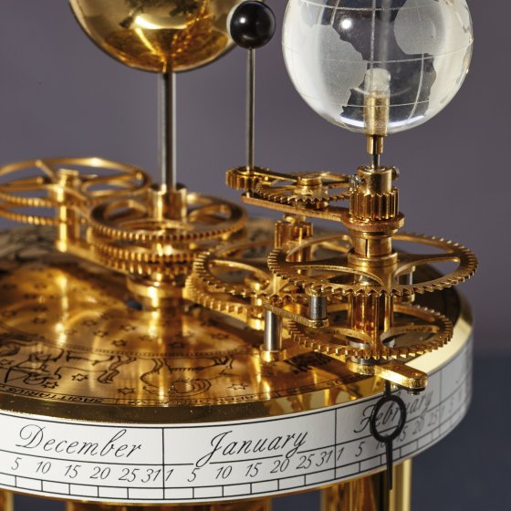 Manche Uhren sind eher Kunstwerke als Zeitmesser. Ein Beispiel dafür ist das ASTROLABIUM: Sein quarzgesteuertes Skelettwerk informiert Sie nicht nur über die Uhrzeit, sondern auch über die datumsaktuelle Konstellation der Himmelskörper Erde, Sonne und Mond. Das Datum selbst wird dabei als Tierkreiszeichen am oberen Kranz des Astrolabiums angezeigt. Nur edelste Materialien fanden beim Bau dieses Meisterwerkes Verwendung. Betrieb über eine Baby-Batterie (separat erhältlich). Maße: Ø ca. 21 cm, Höhe ca. 29 cm. Diese außergewöhnliche Uhrmacherkunst gönnen sich nur Kenner!