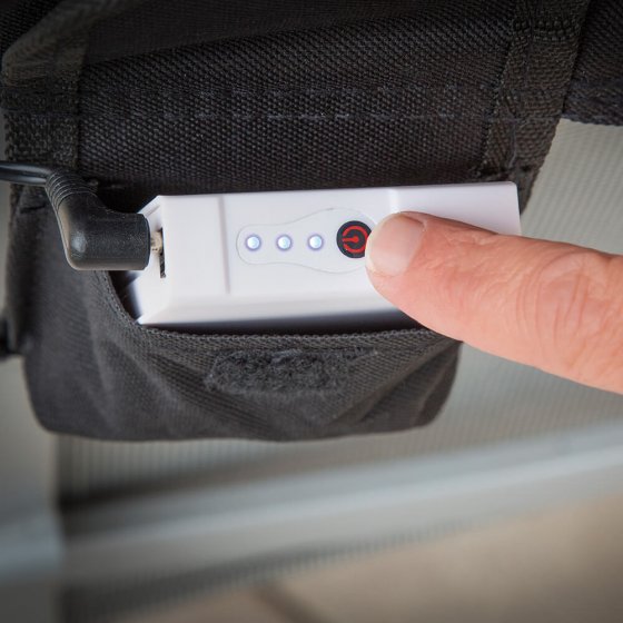 An schönen Tagen sitzt man abends gern noch im Gartenstuhl auf dem Balkon oder auf der Terrasse – und da wird es schnell am unteren Rücken kühl. Mit der BEHEIZBAREN AUFLAGE schaffen Sie auf Knopfdruck Behaglichkeit: Zwei Heiz-Pads wärmen Gesäß und Rücken, die Heizwärme ist 3-stufig regulierbar. Die Power dafür kommt aus einem leistungsstarken Li-Po-Akku (Aufladung über mitgeliefertes 220-V-Ladegerät), der bis zu 5 Stunden Wärme liefert. Sie brauchen also keinen Stromanschluss in der Nähe, und es liegt kein störendes Kabel auf dem Boden. Der Akku lässt sich zudem als Powerbank fürs Smartphone nutzen. Auflagenmaße (L x B): ca. 131 x 42 cm. Nur ca. 4 Stunden Ladezeit. Bezugsmaterial: 100 % Polyester. Machen Sie Ihren Gartenstuhl noch komfortabler!