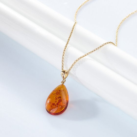 Erleben Sie seine anziehende Wirkung, die seit jeher sagenumwoben ist: Das BERNSTEIN COLLIER schmückt das Dekolleté ihrer Liebsten mit seinem eleganten, cognacfarbenen Glanz. Aus echtem, natürlichem Baltic Bernstein und in wunderschöner Tropfenform geschliffen, spiegelt der Anhänger die Sanftmütigkeit und Kraft des Meeres wieder. Jeder Anhänger ist ein Unikat. Zusammen mit der 750er Gold ummantelten Jasseronkette, entsteht eine besonders harmonische Kombination, die alle Blicke auf sich zieht. Maße Anhänger (L x B): ca. 3 x 2,8 cm; Kettenlänge ca. 45 cm + 5 cm Verlängerung. Eine traumhafte Halskette mit Potential zum neuen Lieblingsaccessoire.
