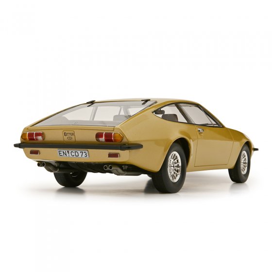 Zwischen 1973 und 1979 produzierte der Nischenhersteller Bitter einen exklusiven Sportwagen auf Basis des Opel Diplomat B. Der BITTER CD ähnelte einem Maserati und war mit 230 PS angemessen motorisiert, aber er war auch schwer und wegen seiner 3-Gang-Automatik wenig sportlich. Zudem kostete bei ihm allein eine beheizte Glasheckklappe 1.300 Mark Aufpreis – dafür bekam man schon einen kompletten Kadett-Tauschmotor. Das 1:18-Modell aus Resin ist, wie alle Resin-Modelle, extrem detailreich: Selbst sehr filigrane Teile wie etwa Türklappen und Scheibenwischer sind fein herausgearbeitet. Sichern Sie sich diese limitierte Rarität, von der auch im Original nicht einmal 400 Stück gebaut wurden.