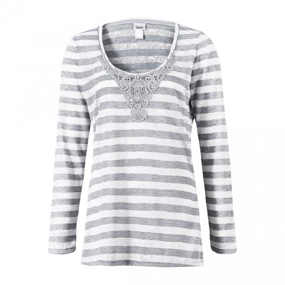 Mit seinem taillierten Schnitt setzt das DAMEN-RINGELSHIRT MIT SPITZENBESATZ Ihre Silhouette feminin in Szene. Trendiges Streifenmuster. Perfekt mit Chinos oder Shorts zu kombinieren. Pflegeleicht. Material: 65 % Polyester, 35 % Baumwolle.
