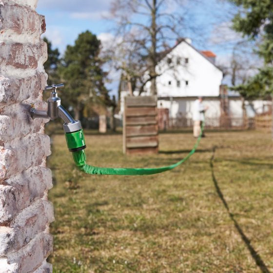 Lange Schläuche sind bei der Gartenarbeit praktisch – beim Wegräumen leider nicht. Der DEHNBARE GARTENSCHLAUCH ist da anders: Wird er nicht gebraucht, ist er gerade einmal ca. 10 Meter lang und lässt sich platzsparend verstauen. Im Garten entfaltet er dann sein volles Potenzial und dehnt sich dank des Wasserdrucks automatisch auf ca. 30 Meter! So erreichen Sie auch die weiter entfernten Beete und Sträucher. Dabei ist er mit gerade einmal 630 g ein echtes Leichtgewicht. Der Anschluss ist für alle üblichen Schlauchadapter geeignet und schnell startklar. Außerdem erhalten Sie gratis die Multifunktionsbrause mit gummiertem Griff und 8 verschiedenen Düsenmodi. Perfekt zum Bewässern der Blumen, Abspritzen der Gartenmöbel und für viele weitere Einsätze!