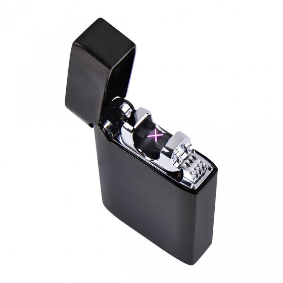 Mit dem DOPPEL-LICHTBOGEN-FEUERZEUG „DELUXE“ wird simples Zigarettenanzünden zu einer Demonstration von Stil: Das edle, schwarz glänzende Gehäuse in Klavierlack-Optik ist extrem hochwertig und liegt angenehm in der Hand. Statt einer Flamme zündet zuverlässig auf Knopfdruck ein kreuzförmiger Lichtbogen, der von einem leistungsstarken LiPo-Akku gespeist wird. Vorteil: Sturm, Wind und Kälte können der Zündfähigkeit nichts anhaben, denn der Lichtbogen wird elektrisch erzeugt. Der Akku wird per USB-Kabel (inklusive) aufgeladen. Feuerzeugmaße (L x B x H): ca. 7 x 4 x 2 cm. Gönnen Sie sich diesen Luxus!