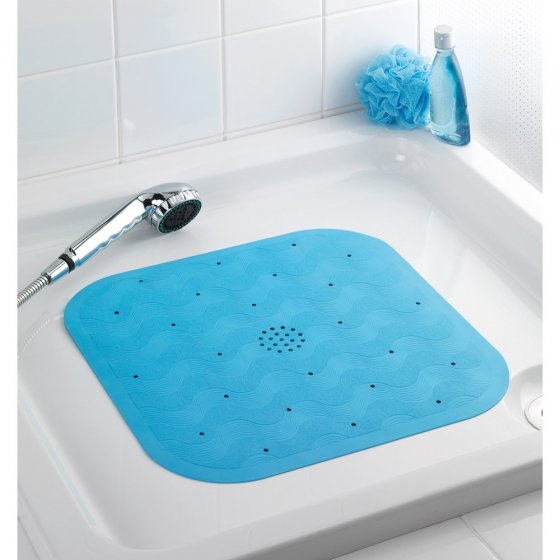 So duschen Sie sicher und hygienisch! Die Duscheinlage aus Natur-Kautschuk mit extra starken Saugnäpfen auf der Rückseite sorgt für mehr Sicherheit beim Baden. Durch die vielen Löcher kann das Wasser gut ablaufen. Maschinenwaschbar. Maße (L x B): ca. 45 x 45 cm.