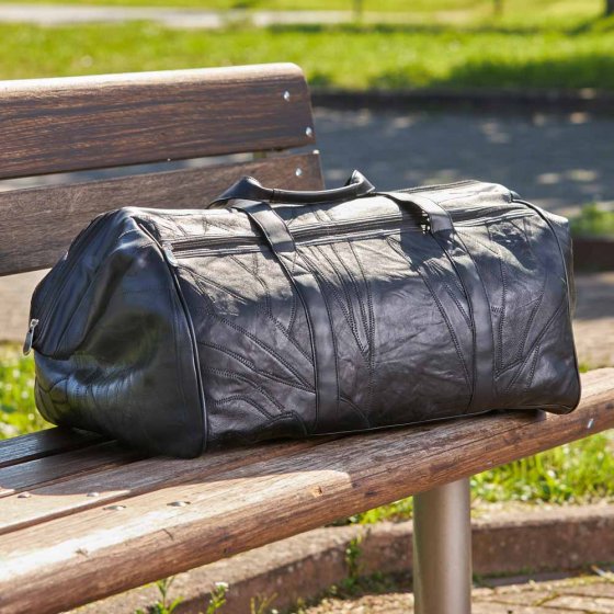Gebügelte und gefaltete Oberhemden oder Hosen knitterfrei in eine Reisetasche hineinbugsieren – geht das? Bei diesem Gepäckstück geht’s: Die ECHTLEDER-REISETASCHE lässt sich wie eine Maulbügeltasche extrem weit (ca. 50 x 40 cm) aufklappen und ist dabei auch noch standstabil. Formschön und aus weichem, dunklem Patchwork-Lammleder gefertigt, ist sie stilsicher auf jeder Reise. Ein langes Außenfach mit Reißverschluss und zwei Innenfächer (eins davon auch mit Reißverschluss) erlauben das geordnete Verstauen von Dokumenten, Kleinelektronik und anderen wichtigen Reiseutensilien. Mit verstärkten Tragegriffen und Schultergurt. Maße (B x H x T): ca. 50 x 35 x 35 cm. Gute Reise!