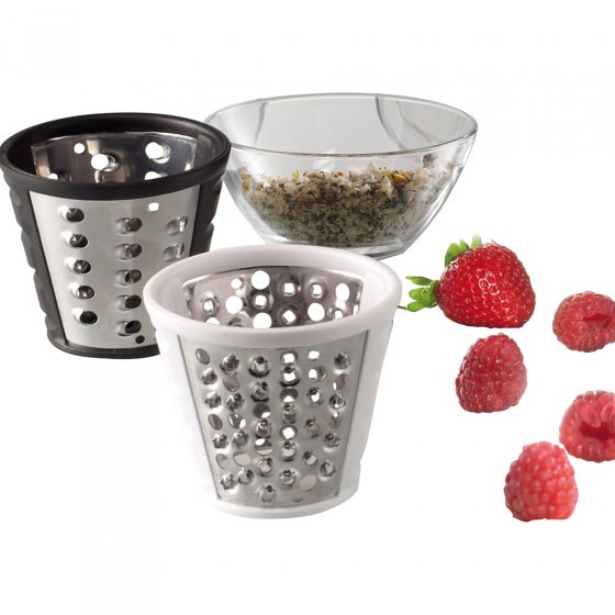 Im Sommer wünschen wir uns Abkühlung. Da kommt ein herrlich köstliches Sorbet gerade recht. Sorbets (im Italienischen „sorbetta“ genannt), sind die fruchtige und kalorienarme Alternative zu Milcheis und lassen sich mit dem ELEKTRISCHEN SORBETZUBEREITER ganz einfach selber herstellen. Einfach gefrorene Erdbeeren, Himbeeren, Kiwi etc. einfüllen, den Knopf drücken, fertig ist der erfrischende Genuss! Für fast alle Früchte und Geschmacksrichtungen stehen Ihnen für die Zubereitung eine Reibe für gefrorene Früchte und eine Raspel für Toppings wie Schokolade, Nüsse u. v. m. zur Verfügung. Der Vorsatz und die Reiben sind durch das „Quick-LocK-System“ leicht zu montieren und zu entfernen. Sämtliches Zubehör ist spülmaschinengeeignet. Leistung: 150 W, Betrieb über 230 V. Maße (L x B x H): ca. 14 x 22 x 37 cm. Im Lieferumfang enthalten sind zudem vier praktische Eisförmchen für leckeres Eis am Stiel. Entscheiden Sie sich für den Hit des Sommers, denn Ihr Sorbetta ist schnell gemacht, meist kalorienärmer als Speiseeis, dafür aber doppelt so fruchtig!