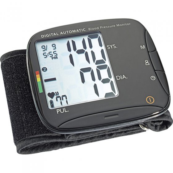 Sie möchten Ihren Blutdruck auch unterwegs im Auge behalten? Das EXTRAFLACHE BLUTDRUCKMESSGERÄT ist dafür ideal: kompakt und leicht. Der Blutdruck wird am Handgelenk gemessen, so brauchen Sie nicht einmal das Sakko abzulegen. Mindestens genauso wichtig: kein unangenehmes Druckgefühl wie bei herkömmlichen Geräten! Es ist einfach zu bedienen, kann zwei Benutzer und 120 Messergebnisse speichern. Dank WHO-Indikator können Sie die Ergebnisse sofort einschätzen. Mit gut ablesbarem LCD-Display und großen Ziffern. Betrieb über 2 Micro-Batterien (separat erhältlich). Maße (L x B x H): ca. 8,5 x 8 x 1,5 cm.