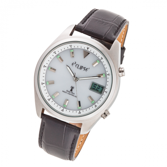 macht! Diese FUNK-SOLARHERRENUHR wartet mit den Vorteilen präziser Funk-Technologie auf, ohne von Batterien abhängig zu sein. Wie das funktioniert? Für Niemanden sichtbar, wurde das leistungsstarke Solar-Panel direkt in das Zifferblatt eingearbeitet! So wird der integrierte Akku alleine durch die Energie des Lichtes permanent aufgeladen. Dunkelgangreserve ca. 3 Monate bei voll aufgeladenem Akku. Indexe sowie Stunden- und Minutenzeiger bei Dunkelheit nachleuchtend. Mit LC-Anzeige für Dartum, Wochentag, Sekunde oder Ladezustand des Akkus. Bis 3 ATM spritzwassergeschütztes Edelstahlgehäuse mit Mineralglasabdeckungen oben und unten, ø ca. 40 mm. Gestepptes Lederarmband mit aktueller Kroko-Prägung und Dornschließe. Automatische Umstellung von Sommer-/Winterzeit dank ausgereiftem Multiband- Funksignalempfänger. Diese Uhr in charakteristisch schlichter Form zeigt den Fortschritt moderner Uhrentechnik: Der Solatbetrieb macht einen Batteriewechsel überflüssig und die Funktechnologie versorgt Sie immer und überall mit der präzisen Uhrzeit versorgen!