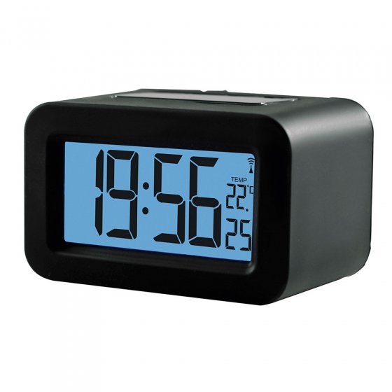Unser FUNKWECKER „RETRO“ sieht nicht nur gut und robust aus – er vereint auch mehrere Funktionen: das große LC Display, welches auf Knopfdruck blau leuchtet, zeigt Ihnen stets funkgenaue Uhrzeit, Datum und die Raumtemperatur an. Dazu wirkt die griffige Kautschukummantelung stoßdämmend, sollte der Wecker einmal herunterfallen. Betrieb über 2 Mignon-Batterien (separat erhältlich). Maße (B x H x T): ca. 10 x 5 x 7 cm.