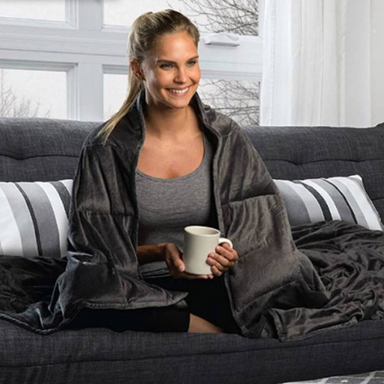Innere Unruhe kann Entspannung und einen tiefen Schlaf verhindern. Die luxuriöse Gewichtsdecke, gefüllt mit hochwertigen Glasperlen, erzeugt einen gleichmäßigen Tiefendruck und wirkt so beruhigend auf Körper und Sinne. Die optimale Gewichtsverteilung durch die 10 x 10 cm großen Kammern ermöglicht ein angenehmes Schwere-Empfinden und gleicht einer sanften Umarmung. Aus weichem Smarttex-Fleece gearbeitet, gibt die Decke auch am Tag ein kuscheliges Gefühl von Geborgenheit. Auch verwendbar mit dem eigenen Bettenbezug. Maße (L x B): ca. 200 x 135 cm. Ideal für Personen mit einem Körpergewicht von 60 – 90 kg. Eigengewicht: 7,25 kg. Material: Polyester und Glasperlen.