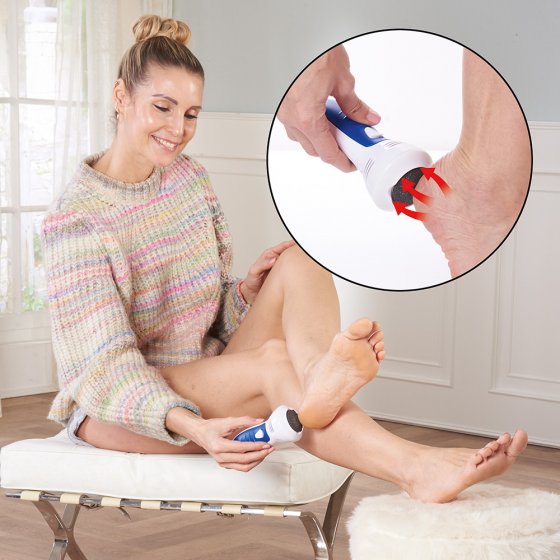Das mühsame Entfernen von Hornhaut gehört endgültig der Vergangenheit an: Der kabellose Hornhautentferner mit Saugfunktion sorgt mit seinen leistungsstarken 1.800 Umdrehungen pro Minute im Nu für gepflegte Füße! Er liegt bequem in der Hand und kann wahlweise mit dem groben oder sanften Feilaufsatz verwendet werden. Dank der praktischen Saugfunktion werden alle Hautschüppchen direkt beim Entfernen eingesaugt. Betrieb über integrierten Akku oder 4 x AAA-Batterien (separat erhältlich). Mit 4 x Schleifaufsätzen (fein/grob), Reinigungsbürste, Ersatzfilter und USB-Ladekabel. Maße (Ø x H): ca. 6,5 x 15,3 cm. Das Entfernen von Hornhaut war noch nie so schnell, sicher und sauber!