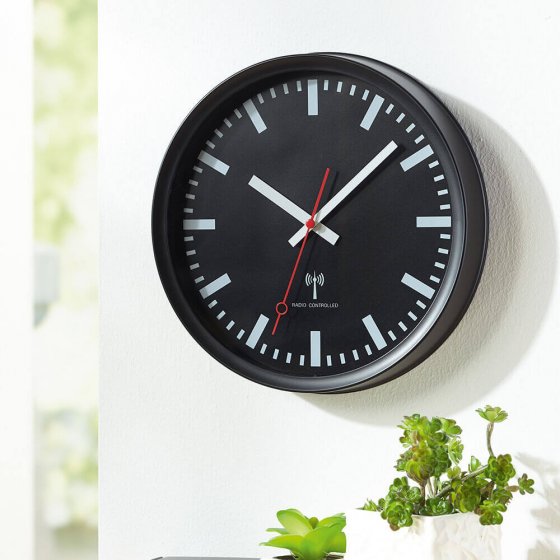 Sie hätten gern eine analoge Wanduhr, aber ohne das klassische Tick-Tack-Geräusch? Dann ist die LAUTLOSE FUNK-WANDUHR die richtige Uhr für Sie! Ihr leises Sweep-Funk-Uhrwerk „zerhackt“ die Zeit nicht in einzelne Sekunden, sondern lässt den Sekundzeiger kontinuierlich schleichend über das Zifferblatt wandern – so entsteht kein nervtötendes Ticken. Das Bahnhofsuhren-Design mit kontraststarker Negativ-Farbgebung sorgt für gute Ablesbarkeit, der integrierte DCF77-Zeitsignalempfänger garantiert höchste Präzision. Betrieb über eine Mignon-Batterie (separat erhältlich). Kunststoffgehäuse Ø: ca. 25 cm, Gehäusestärke: ca. 4 cm. Endlich eine Uhr, die nicht tickt ...!