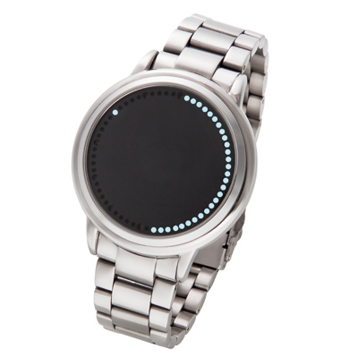 Diese einzigartige LED-TOUCH-ARMBANDUHR ist für Männer mit Sinn für das Besondere geschaffen, die Ästhetik, Originalität und modernste Technologie an einer Uhr zu schätzen wissen! Geheimnisvoll und unergründlich, zieht sie mit ihrem futuristischen Zifferblatt, auf dem weder Zeiger noch Zahlen zu erkennen sind, alle Blicke auf sich. Keine Tasten oder Knöpfe stören ihr markantes Design, und ein jeder wird sich fragen, wie diese Uhr funktionieren mag... Spannen Sie Ihre Freunde nicht auf die Folter, und berühren Sie das taktile Uhrglas: Mit einem Fingertippen schalten Sie die Zeitanzeige ein. Weiße LEDs zeigen Stunden und Minuten an, Sie lesen die Zeit so bequem ab wie auf einer Analog-Uhr! Bei jedem Einschalten wird 1 von 10 verschiedenen Lichtsequenzen abgespielt. Durch Berührung des Uhrglases wählen Sie zwischen einer Lichtsequenz alle 30 Minuten oder einer blinkenden LED bei 12.00 Uhr. Gehäuse aus Edelstahl (Ø 4,2 cm), Metallarmband mit Faltschließe, spritzwassergeschützt. Eine außergewöhnliche, designstarke Armbanduhr, die an Ihrem Handgelenk viel Aufsehen erregen wird!