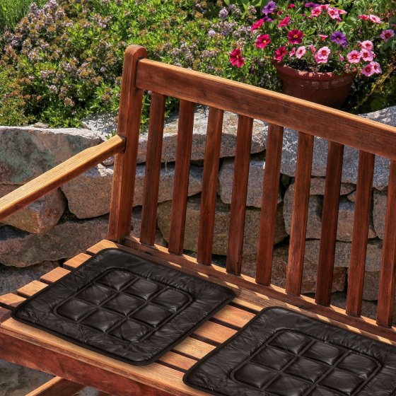 Machen Sie es sich doch einfach bequem: Mit der komfortablen LEDER-SITZAUFLAGE verwandeln Sie ungemütliche Holzstühle, harte Parkbänke oder auch Autositze in edle Wohlfühlplätze. Durch ihre ideale Größe passt die Auflage auf fast alle gängigen Sitzgelegenheiten. Ihre Oberseite aus robustem, schwarzem Lammleder-Patchwork sieht nicht nur gut aus, sondern erhöht durch ihre leichte Polsterung den Sitzkomfort auch spürbar. Dank der rutschhemmenden Unterseite bleibt die schöne Sitzauflage an ihrem Bestimmungsort – ganz ohne Festbinden oder -kletten. Maße (B x T): ca. 41 x 41 cm. Damit wird jeder Platz zu Ihrem Lieblingsplatz!