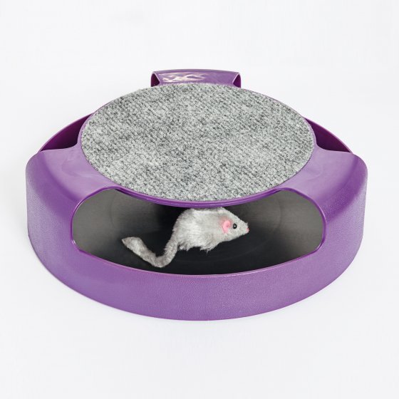 Das MECHANISCHE MAUS-RONDELL ist exakt auf die natürlichen Bedürfnisse Ihrer Katze zugeschnitten. Hiermit kann sie ihrem Jagd- und Spieltrieb freien Lauf lassen – ohne, dass Vasen, Polster und Co. zu Schaden kommen. Denn im Rondell rotiert eine täuschend echt aussehende Maus rechts herum oder links herum, je nachdem, wie der Schlag Ihrer Katze sie erwischt hat. Stege über dem Rand erschweren die Jagd nach der Beute und sorgen bei Ihrer Katze für lang anhaltenden Spaß und Abwechslung. Und Sie? Sie können das Spiel Ihres Lieblings in aller Ruhe beobachten – und sich dabei herrlich entspannen! Ø: ca. 26 cm, Höhe: ca. 7 cm. Mit robuster, widerstandsfähiger Kratzmatte in der Mitte. Ein wirklich geniales Spielzeug – daran werden Ihr Tier und Sie viel Vergnügen haben!