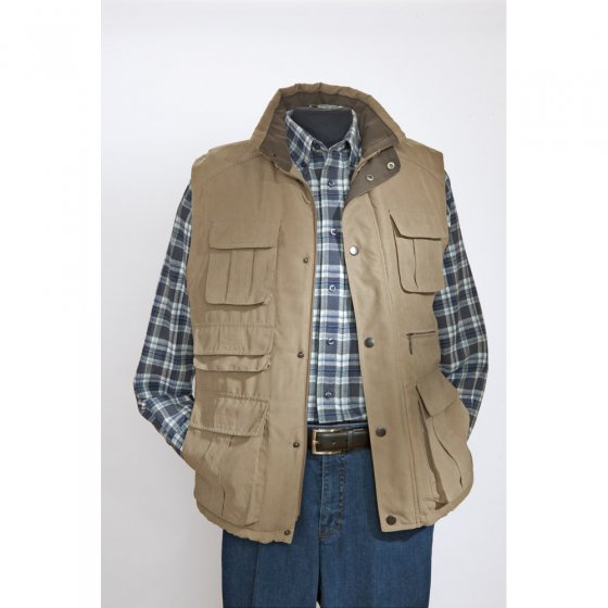Die ideale Begleiterin beim Wandern, Radfahren, Jagen – oder beim Stadtbummel! In dieser hoch funktionellen MIKROSKIN-11-TASCHEN-WESTE tragen Sie alles Wichtige „am Mann“ und sehen dabei sportlich-schick aus! Ihr samtiger, leicht schattierter Oberstoff aus Mikrofaser ist herrlich weich, aber auch unempfindlich und strapazierfähig. Einen kleinen Regenschauer lässt er abperlen. Das wattierte Steppfutter ist federleicht, aber behaglich wärmend. In Sandbeige lässt sich diese Weste der Qualitätsmarke Rick Armand mühelos kombinieren. Ihre hohe Knitterarmut ist ideal zum Reisen. Mit verdecktem Reißverschluss und Druckknöpfen zu schließen, Kontrastverarbeitung an Kragen und Knopfleiste, verstellbarer Bund mit Tunnelzug, Aufhänger im Rücken, 8 Außentaschen und 3 Innentaschen mit Druckknopf, Klett- oder Reißverschluss. Mikrofaser aus 90% Polyester, 10% Nylon, Futter aus 100% Polyester. Entdecken Sie eine attraktive Art, sich 100% funktionell zu kleiden!