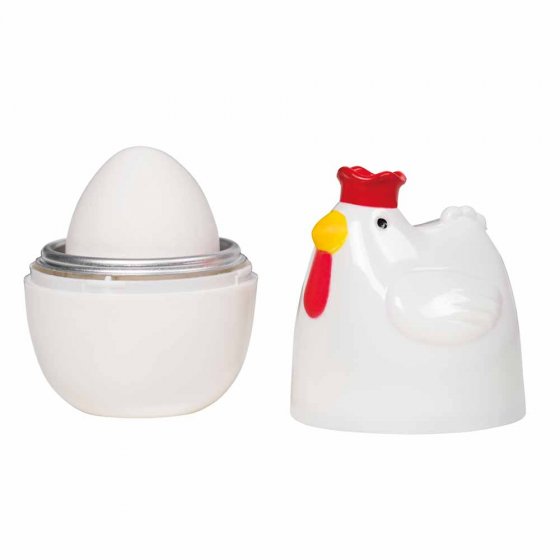 Das schnellste Frühstücksei! Einfach Wasser in die Form füllen, 1 Ei dazu und ab in die Mikrowelle. Das niedliche Huhn kocht Ihr Ei perfekt und serviert es obendrein als lustiger Kellner. Maße (Ø x H): 7 x 11 cm.