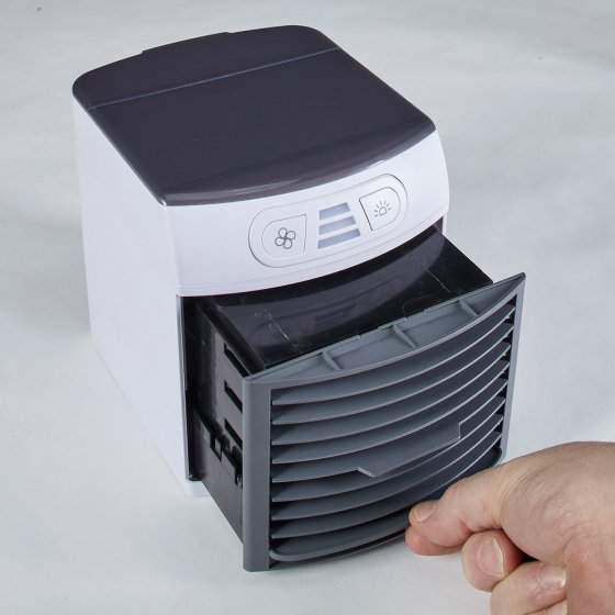 Kommen Sie frisch durch den Sommer! Dank der kompakten MINI-KLIMAANLAGE MIT STIMMUNGSLICHT wird auch die größte Hitze erträglich. Ganz ohne Chemie, denn sie kühlt Ihre Räume mittels Verdunstungskälte: Füllen Sie bis zu 600 ml Wasser in den Tank, wählen Sie per Knopfdruck zwischen 3 Kühlstufen und schon genießen Sie bis zu 10 Stunden angenehme Kühle pro Füllung! Nebenbei erzeugt das LED-Panel stimmungsvolles Licht – in 7 wählbaren Farben. Betrieb über 220–240 V Stecker oder USB-Kabel (inklusive). Maße (B x H x T): ca. 17 x 17 x 21 cm. Neu: mit schimmelbeständigem Filter! Gönnen Sie sich eine Erfrischung – ideal auch auf Reisen.
