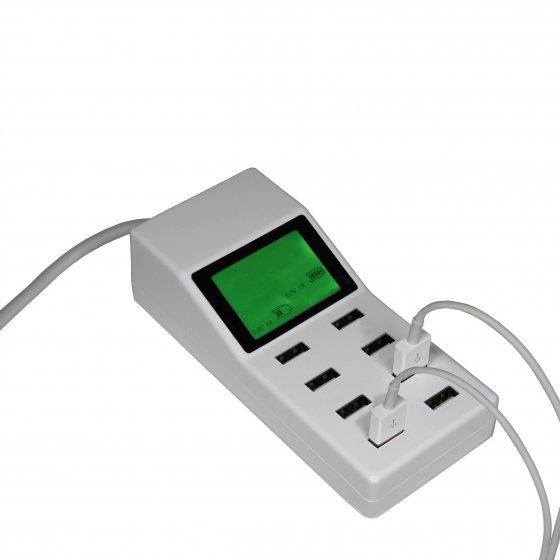 Immer mehr elektronische Geräte werden über USB-Kabel aufgeladen. Ein passender Adapter für die Steckdose fehlt aber oft. Wenn Sie unsere MULTI-USB-LADESTATION besitzen, kann Ihnen das egal sein, denn sie bietet Ihnen 8 Anschlüsse! Mit einer Gesamtleistung von 9,2 A können Sie so diverse Geräte gleichzeitig und ohne Geschwindigkeitsverlust laden - ein Smartphone benötigt ca. 1 A. Das Gerät erkennt automatisch welche Stromstärke bspw. für Ihr Tablet oder Ihre aufladbare Taschenlampe erforderlich ist. Das Display zeigt Ihnen übersichtlich den jeweiligen Ladezustand an. Maße (L x B x H): ca. 6 x 14 x 4 cm. Vergessen Sie Adapter für Steckdosen!