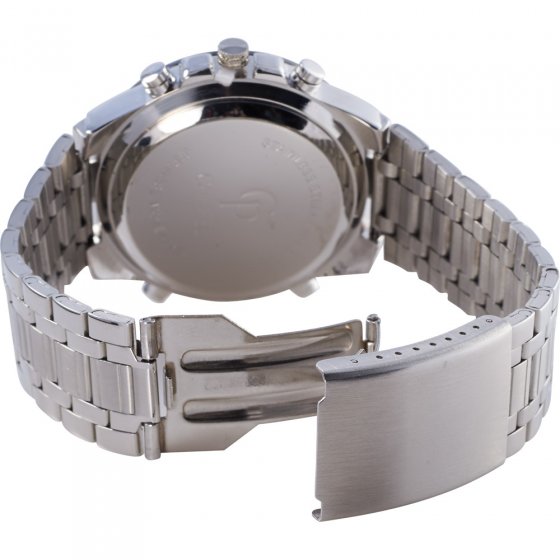 Etwas Besonderes aus der Uhrenwelt: Der MULTIFUNKTIONS-CHRONOGRAPH „COLORIS“ bringt Farbe ans Handgelenk! Ein simpler Knopfdruck genügt, und das Display leuchtet wahlweise in 7 LED-Farbtönen oder Multicolor-Flash. Analoges Zifferblatt mit 4 integrierten Digitaldisplays, Stoppuhr, Alarm, Stundensignal sowie Datumsanzeige mit Wochentag. Hochwertiges Edelstahl-Armband mit Sicherheitsfaltschließe, Metallgehäuse mit Edelstahlboden und Mineralglasabdeckung. Ø ca. 4,4 cm, Höhe ca. 1,5 cm, Gewicht ca. 140 g. Lieferung inklusive Batterien für Uhrwerk und Display-Beleuchtung.