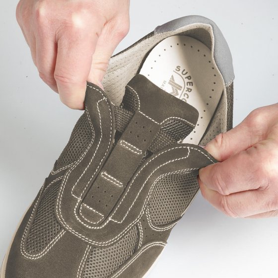 Der SPORTIVE STRETCHSLIPPER macht vor, wie man an den warmen Tagen gut zu Fuß ist! Durch die Stretchzone auf dem Spann passt er sich ideal an den Fuß an und engt nie ein. Der Mix aus Leder und Textil trägt sich weich und angenehm und gibt dem Schuh die legere und sommerliche Note, die ins Auge fällt. Das Komfort-Fußbett (wechselbar) und der Shock Absorber dämpfen den Auftritt und sorgen dafür, dass man beschwingt geht. Kanten und Lasche sind soft gepolstert; die rutschhemmende Sohle aus Synthetik ist so biegsam, wie der Fuß es liebt. Der Slipper hat ein Futter aus Textil und Ziernähte für das stylische Extra. Made in Italy.