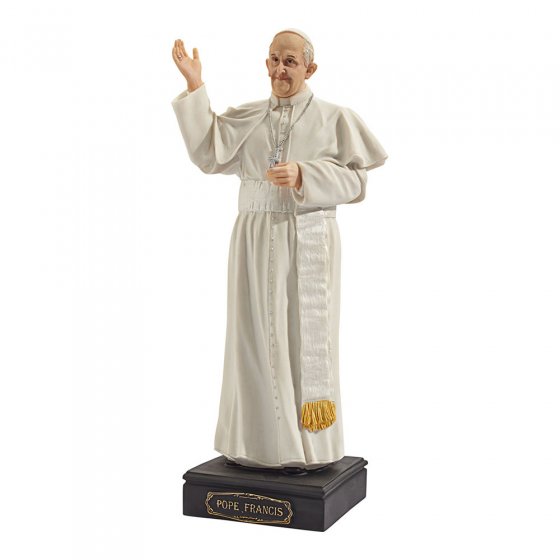 Er gilt als „Papst der Armen“, weil er einen einfachen Lebensstil pflegt und die Nähe zu den Menschen, insbesondere zu den wenig begüterten Menschen, sucht: Papst Franziskus I. Das Wohnen im Palast des Vatikans lehnt er ebenso ab wie äußerlichen Prunk. Die STATUE PAPST FRANZISKUS zeigt ihn so, wie er sich bevorzugt der Öffentlichkeit präsentiert: in schlichter weißer Soutane, ohne Hermelin-Umhang und ohne die roten Papstschuhe, die Hand zum Segnen erhoben. Die Figur ist sehr detailliert gearbeitet und handbemalt. Material: Kunststein (Resin). Maße (L x B x H): ca. 10 x 11 x 28 cm. Gewähren Sie sich zu Ostern Ihre ganz persönliche Papst-Audienz!