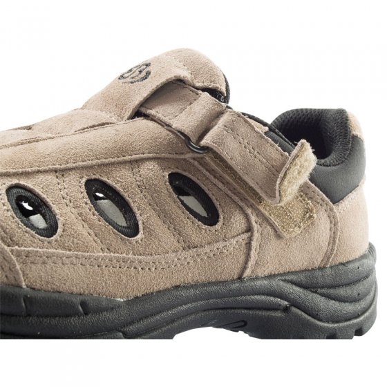 Dank Stretch-Einsatz auf dem Spann und Klettverschluss bietet er einen weiten Einstieg und passt sich individuell an den Fuß an. Belüftungsöffnungen auf beiden Seiten gewährleisten ein hygienisches, kühles Innenklima. Die Gel-Einlegesohle mit stoßdämpfendem Fersenpolster vermittelt ein wolkenweiches Laufgefühl und fängt Erschütterungen ab. Ideal zum Barfußtragen ist das atmungsaktive Textilfutter. Ein robuster, sportiver Freizeitschuh aus dem Hause Brütting, in dem Sie viele Kilometer mit einmaligem Komfort zurücklegen werden!