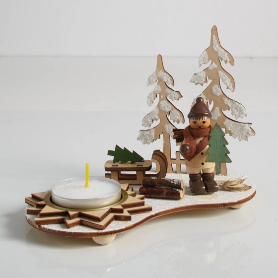 Oft sind es die Kleinigkeiten, die die Weihnachtszeit so schön und gemütlich machen. Der TEELICHTHALTER “SCHLITTENFAHRT“ ist eine davon! Aus Holz gefertigt, detailliert gearbeitet und liebevoll von Hand koloriert, zeigt er eine Winterlandschaft mit funkelnden, schneebedeckten Bäumen und einem Jungen mit Schlitten. In der Halterung aus messingfarbenem Metall findet das Teelicht einen sicheren Platz. Maße (L x B x H): ca. 8,5 x 15 x 11 cm. Teelichter mit langer Brenndauer separat erhältlich. Mit diesem kleinen Kunstwerk machen Sie nicht nur sich selbst eine Freude: Der Teelichthalter ist ein ideales Geschenk für den nächsten Adventskaffee!