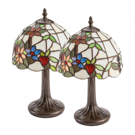 Dem Charme der TISCHLAMPE „TIFFANY“ kann man sich einfach nicht entziehen – denn ihr warmes, stimmungsvolles Licht zieht den Betrachter sofort in ihren Bann! Dabei präsentiert sich der formvollendete Lampenschirm in beeindruckendem Detailreichtum. 185 farbenprächtige Glaselemente wurden dazu einzeln von Hand in eine Metalllegierung eingefasst. Die so entstandenen Blumen- und Fruchtdessins sind nicht nur ein echter Hingucker – jedes ist ein handgefertigtes Unikat! Lampenfuß aus Metall in Jugendstil-Machart. Maße: ca. 20 x 33 cm. Fassung 1x E14 (Leuchtmittel separat erhältlich). Passend für jedes Wohnambiente. Ideal auch als Duo auf dem Sideboard, auf dem Nachttisch, als doppelt schöner Effekt auf jeder Seite des Sofas – und einfach ideal für viele stimmungsvolle Momente!