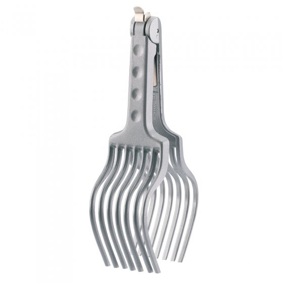 Diese Küchenhelfer nehmen Ihnen viel Arbeit ab – und sorgen dafür, dass Ihre Speisen auf dem Teller rundum appetitlich aussehen! Mühelos schneiden Sie damit gleichmäßige Scheiben, ganz ohne Verletzungsrisiko. Die TRANCHIERHILFE (ca. 25 x 6,5 cm) geht Ihnen beim Schneiden von Bratenfleisch und Wurst zur Hand. Die Gabel mit Arretierfunktion hält das Fleisch, während Sie einfach durch die Zinken schneiden – schon präsentiert sich selbst zartester Roll- und Sauerbraten in perfekten Scheiben auf dem Tisch! Die TOMATENZANGE (ca. 18 x 8 cm) hilft Ihnen beim Schneiden von Tomaten, Zwiebeln, Eiern, Zitronen, Mozarella u. v. m. Sauber, schnell – und die akkuraten Scheiben sehen einfach zum Anbeißen aus! Langlebige Qualität aus beschichtetem Aluminium, spülmaschinengeeignet – eine echte Erleichterung für den regelmäßigen Gebrauch!