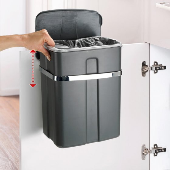 Unangenehme Gerüche? Nicht in der Küche! In dem TÜR-ABFALLEIMER verschwinden Küchenabfälle schnell und diskret. Einfach in die Schranktür hängen und schon ist er für Gäste unsichtbar. Außen angebracht, genügt ein Handgriff und der Müll ist verschwunden. Dank stabilem Stahlrahmen bleibt er fest in der Position. Das Fassungsvermögen von 12 Liter eignet sich auch perfekt für Bio-Abfälle und erleichtert die Mülltrennung. Der Deckel hält unliebsame Gerüche unter Verschluss, der herausnehmbare Behälter kann zudem bequem geleert werden. Maße (B x H x T): ca. 26 x 37 x 19 cm (ohne Halterung). Keine Spur von Müll – Ihre Küche scheint tadellos!
