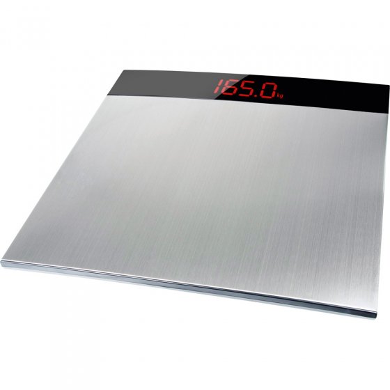 In fast jedem Haushalt gibt es eine Personenwaage – und sie verbringt ihr Dasein in der Regel in einer dunklen Ecke des Badezimmers oder garin einem Unterschrank. Grund: Die meisten Personenwaagen sind keine Design-Highlights. Anders die ULTRAFLACHE PERSONENWAAGE: Ihre glänzende, nur zwei Zentimeter dünne Edelstahl-Trittfläche macht sie zu einem wahren Blickfang. Das große LED-Display mit roten Leuchtziffern ist bequem im Stand ablesbar, akrobatisches Vornüberbeugen ist nicht nötig. Hochpräzise DMS-Sensoren messen das Gewicht bis auf 100 g genau. Die Maximaltragkraft beträgt 200 kg. Dank Step-on-Funktion brauchen Sie sich nicht zubücken, um die Waage einzuschalten – die Messung wird beim Aufsteigen automatisch aktiviert. Betrieb über sechs Micro-Batterien (mitgeliefert). Maße: ca. 35 x 34 x 2 cm. Auf dieser Waage macht jeder eine gute Figur!