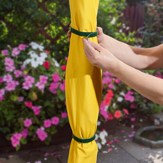 “Das Klettband ist gut im Garten anwendbar Zum Beispiel zum Befestigen von Rosen an einem Stab als Stütze”