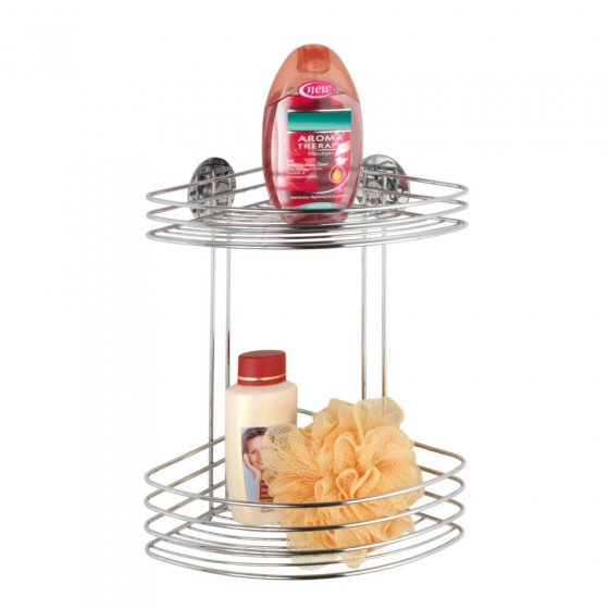 Dieses dekorative Eckregal bietet mit den 2 Ablagekörben viel Platz und ist durch die Spezial-Klebepads mit bis zu 40 kg belastbar. Aus hochwertig verchromtem Stahl. Maße (B x H x T): ca. 26,5 x 33 x 20 cm.