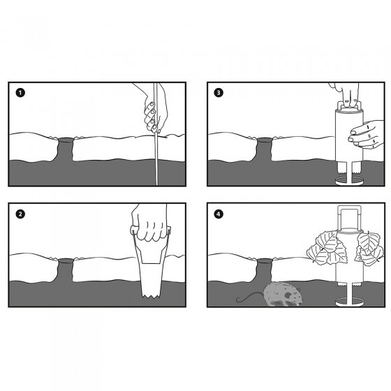 Unterirdische „Besucher“ quälen das Herz eines jeden Gärtners und eine professionelle Bekämpfung ist meistens nicht nur aufwändig, sondern auch teuer und manchmal sogar umweltschädlich. Die WÜHLMAUS-FALLE löst all diese Probleme zuverlässig. Stecken Sie sie einfach in den Wühlmaustunnel, spannen sie die Falle – fertig. Lästiges Graben entfällt. Sobald die immer wieder verwendbaren Fallen zuschnappen, erkennen Sie dies sofort am Griff, der danach viel tiefer sitzt. Material: wetterbeständiger Kunststoff. Maße (Ø x H): ca. 6 x 18 cm. Gewicht: je ca. 130 g. Genießen Sie endlich wieder einen makellosen Rasen.
