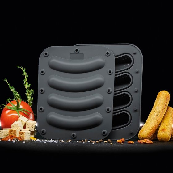 „Was in der Wurst drin ist, wissen nur Gott und der Metzger“, sagt der Volksmund. Sie wüssten’s gern genauer? Mit dem WURSTI-MAKER können Sie selbst Würste kreieren – aus Fleisch, aus Tofu, aus Soja oder aus anderen Gemüsen. Einfach die Wurstmasse in die Form füllen, in heißem Wasser garen und dann (nach Wunsch) braten oder grillen – fertig! Sie ganz allein entscheiden über die Würze, über den Salzgehalt und (bei fleischhaltigen Würsten) über den Fleisch-/Fettanteil. Da der Wursti-Maker 2 Plattformen mit je 4 Wurstschablonen enthält, können Sie 8 Würste gleichzeitig zubereiten. Maße der Form (L x B x H): ca. 17 x 14 x 3 cm. Wurstlänge: je 11 cm. Neugierig? Dann wursten Sie los!